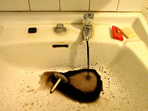 the paint starts melting. We build an air shaft out of a clothline and a blanket, hooked