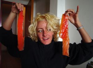 One day Pierre and I got to visit a Salmon and Trout farm. Female salmon lay an