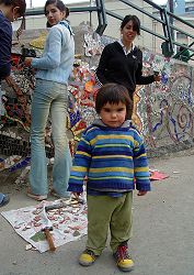 walking, we come across a school that is doing a city art project. It's a mosaic wrapping