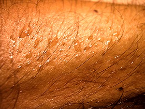 sweat form at the base of every single hair. (Note: this is my forearm, not